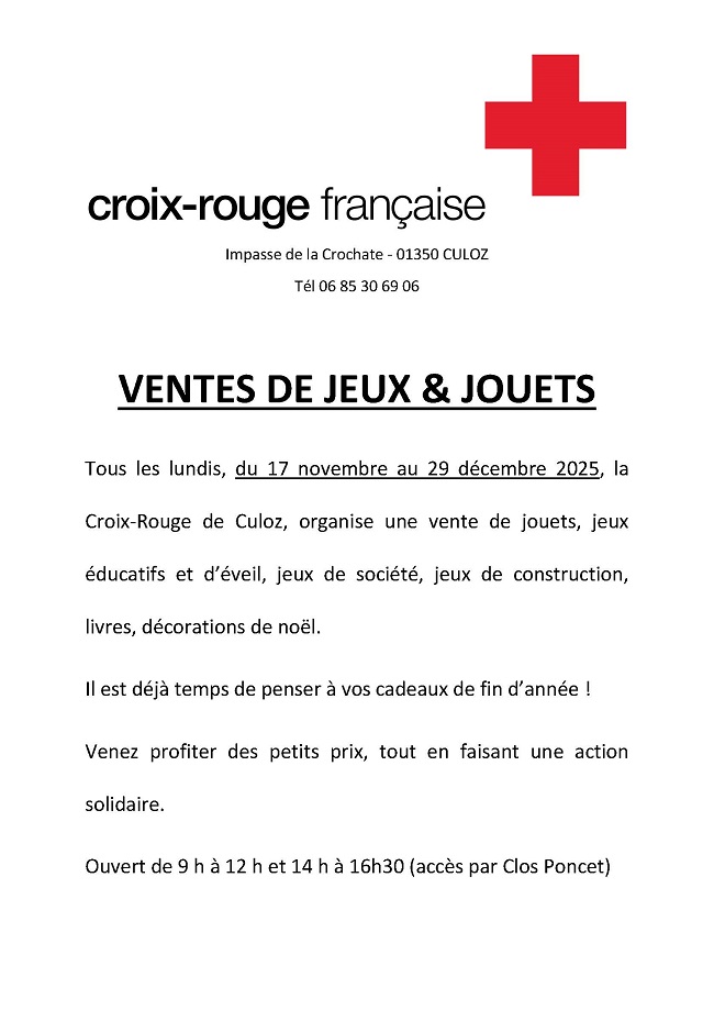 - Croix Rouge vente jeux et jouets du 17/11 au 29/12