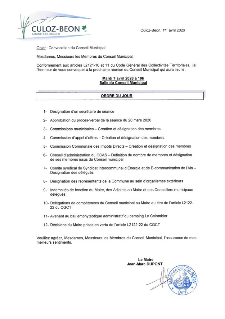 La mairie est joignable aux horaires d’ouverture au 04.79.87.00.29. Vous pouvez également nous contacter par mail à mairie@culoz-beon.fr ou en cliquant sur nous contacter.